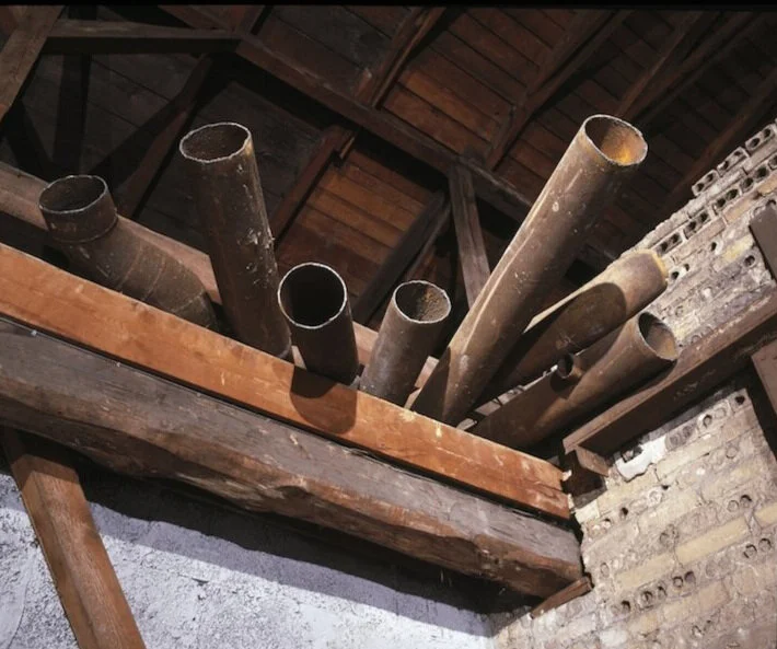 Volume, for a moment, simultaneously blown from seven iron pipes into silence.